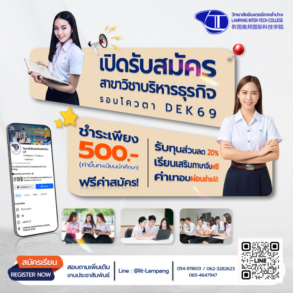 วิทยาลัยอินเตอร์เทคลำปาง (LIT) ร่วมกิจกรรมเทศกาลวันตรุษจีน โรงเรียนลำปางกัลยาณี อ่านเพิ่มเติม » 16 ก.พ. 2569