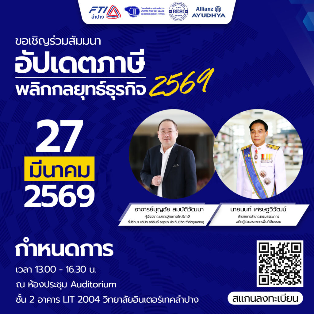 ร่วมกับองค์กรเครือข่าย จัดโครงการสัมมนาวิชาการในหัวข้อ “อัปเดตภาษี พลิกกลยุทธ์ธุรกิจ 2569” อ่านเพิ่มเติม » 27 มี.ค. 2569