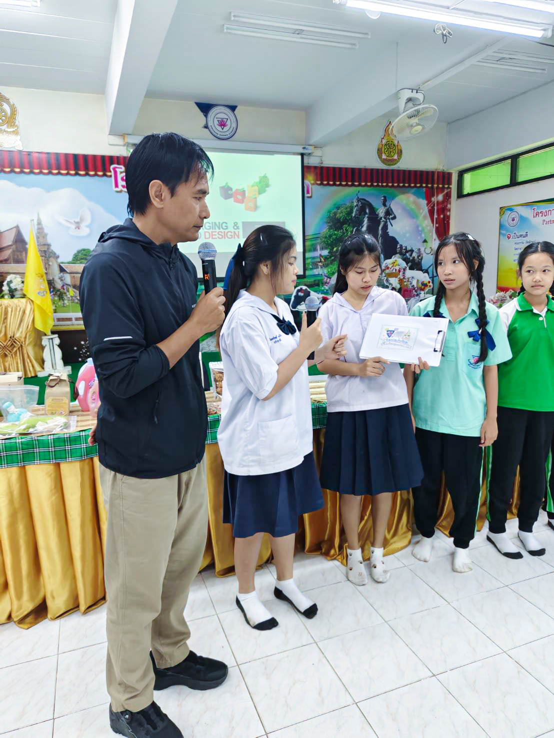 บริการวิชาการภายใต้โครงการ นวัตกรรมสร้างสรรค์สู่ผลิตภัณฑ์ชุมชน (โครงการพี่เลี้ยง) โดยจัดกิจกรรม “การสร้างตราสินค้าและการออกแบบบรรจุภัณฑ์” เพื่อส่งเสริมการเรียนรู้และพัฒนาทักษะเชิงสร้างสรรค์ให้แก่นักเรียน ณ โรงเรียนอนุบาลเกาะคา (น้ำตาลอนุเคราะห์) อำเภอเกาะคา จังหวัดลำปาง