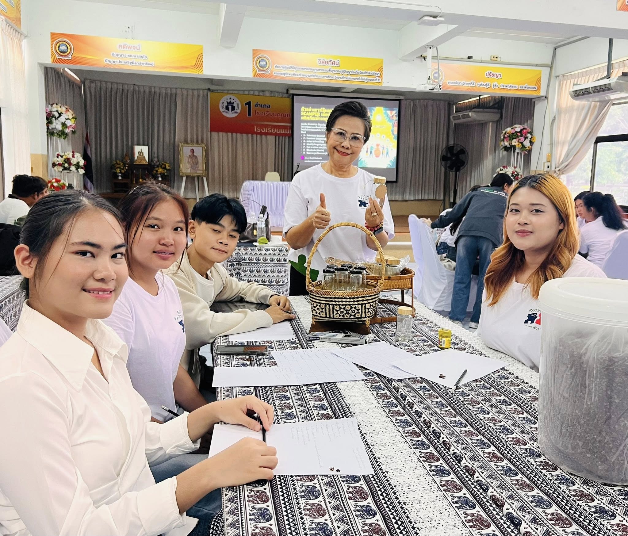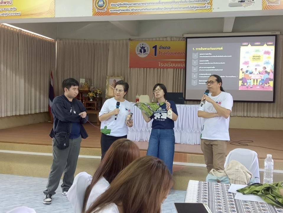 วันที่ 2 พฤษภาคม 2568 วิทยาลัยอินเตอร์ร่วมกับมหาวิทยาลัยธรรมศาสตร์ ศูนย์ลำปาง นำโดย รศ.ดร. บุญฑวรรณ วิงวอน ผู้อำนวยการสำนักงานวิจัยและบริการวิชาการ และ ผศ.ดร.รัชภูมิ ปัญส่งเสริม อาจารย์มหาวิทยาลัยธรรมศาสตร์ ศูนย์ลำปาง พร้อมคณะอาจารย์วิทยาลัยอินเตอร์เทคลำปาง เป็นวิทยากรในโครงการ Equity Partnerships โดยมี ผศ.ดร. กนกวรรณ อู่ทองทรัพย์ อาจารย์มหาวิทยาลัยธรรมศาสตร์ ศูยน์ลำปาง เป็นหัวหน้าโครงการซึ่งมีเครือข่ายหนุนเสริม คือ กสศ. /มหาวิทยาลัยธรรมศาสตร์ /วิทยาลัยอินเตอร์เทคลำปาง และโรงเรียนแม่เมาะวิทยา เพื่อขับเคลื่อนผู้ประกอบการรุ่นยาว์ (นักศึกษาและนักเรียน) ผ่านแนวคิดการออกแบบ การพัฒนาผลิตภัณฑ์ต้นแบบ ด้วยการลงมือปฏิบัติจริงผ่านการใช้ทรัพยากรพื้นถิ่นภายใต้แบรนด์ “เมาะ เมี่ยน มาศ” ทำให้เกิด Impact หลากหลาย เช่น นวัตกรรมผลิตภัณฑ์/การเรียนรู้ร่วมกัน/การประยุกต์ใช้วัฒนธรรมพื้นถิ่นสู่การพัฒนาผลิตภัณฑ์ชุมชน เพื่อจำหน่ายผ่านตลาดออนไลน์ คือ Shopee by SEA Compan ณ โรงเรียนแม่เมาะวิทยาคม อ.แม่เมาะ จ.ลำปาง